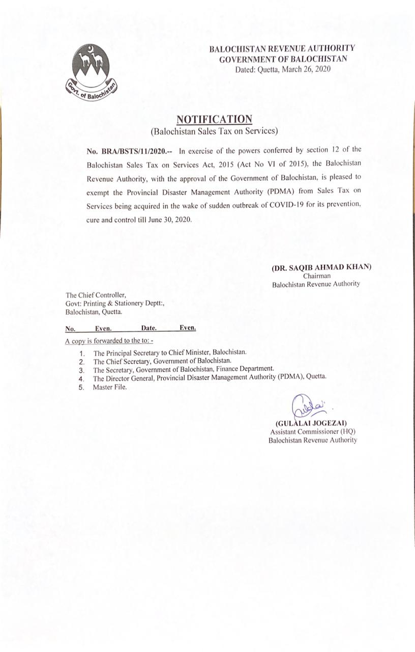 Notification Govt. of Balochistan Head of Accounts Sales Tax on Services — Notifications_SalesTax