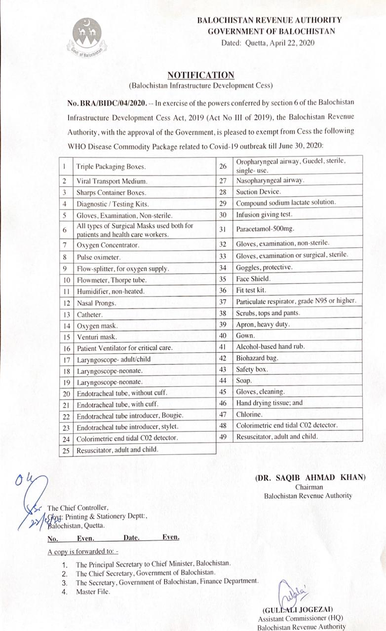BIDC exemtion on WHO diseas commodity Package related to COVID-19 — Notifications_SalesTax