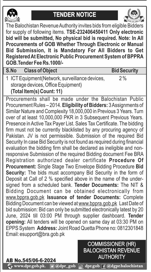 BRA tender for purchase of ICT Equipment — Tenders