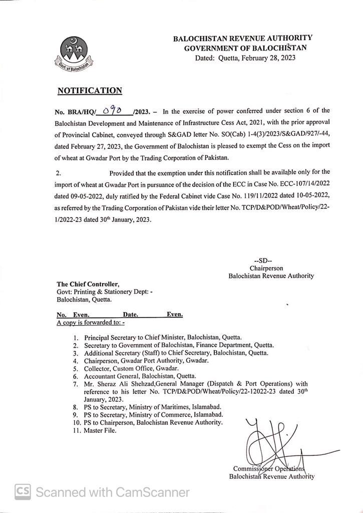 Gwadar Port Authority (GPA) exemption from BIDC — Notifications_SalesTax